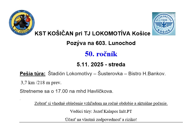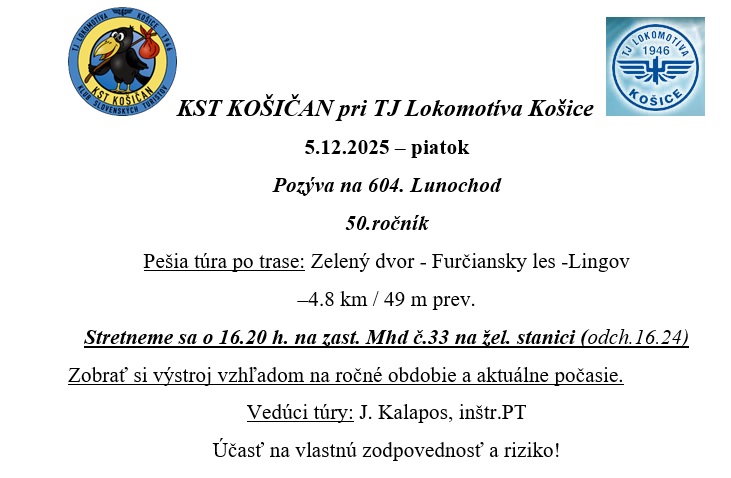 Návrat: Vlakom z Prešova (13:42 h, 14:19, 14:42 h) do Košíc. Akcia je zrušená.Pre zlé poveternostné podmienky sa akcia ruší. Prekladá sa na Január 2026.