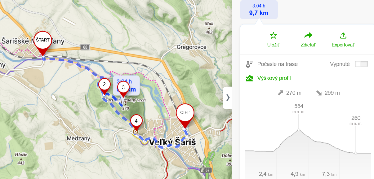 Trasa: Šarišské Michaľany – hrad Šariš – Veľký Šariš.
