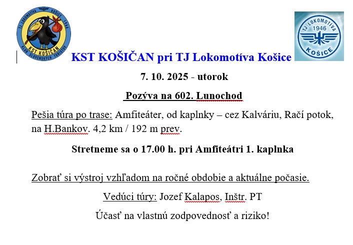 Doprava: Stretneme sa o 19:00 h na Štadióne Lokomotíva po schôdzi klubu.