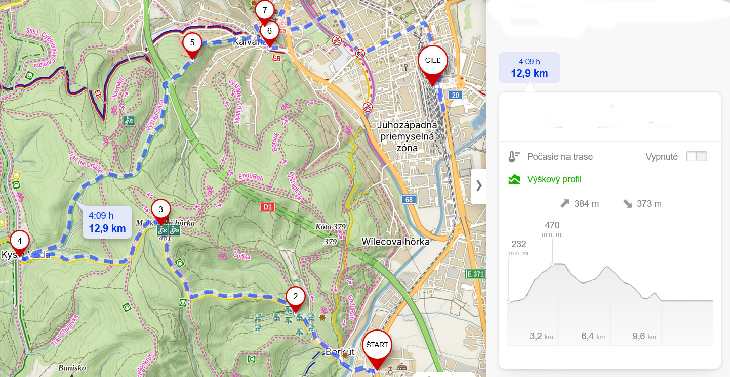 Údaje o trase: 12,9 km; prevýšenie: +/384 m;