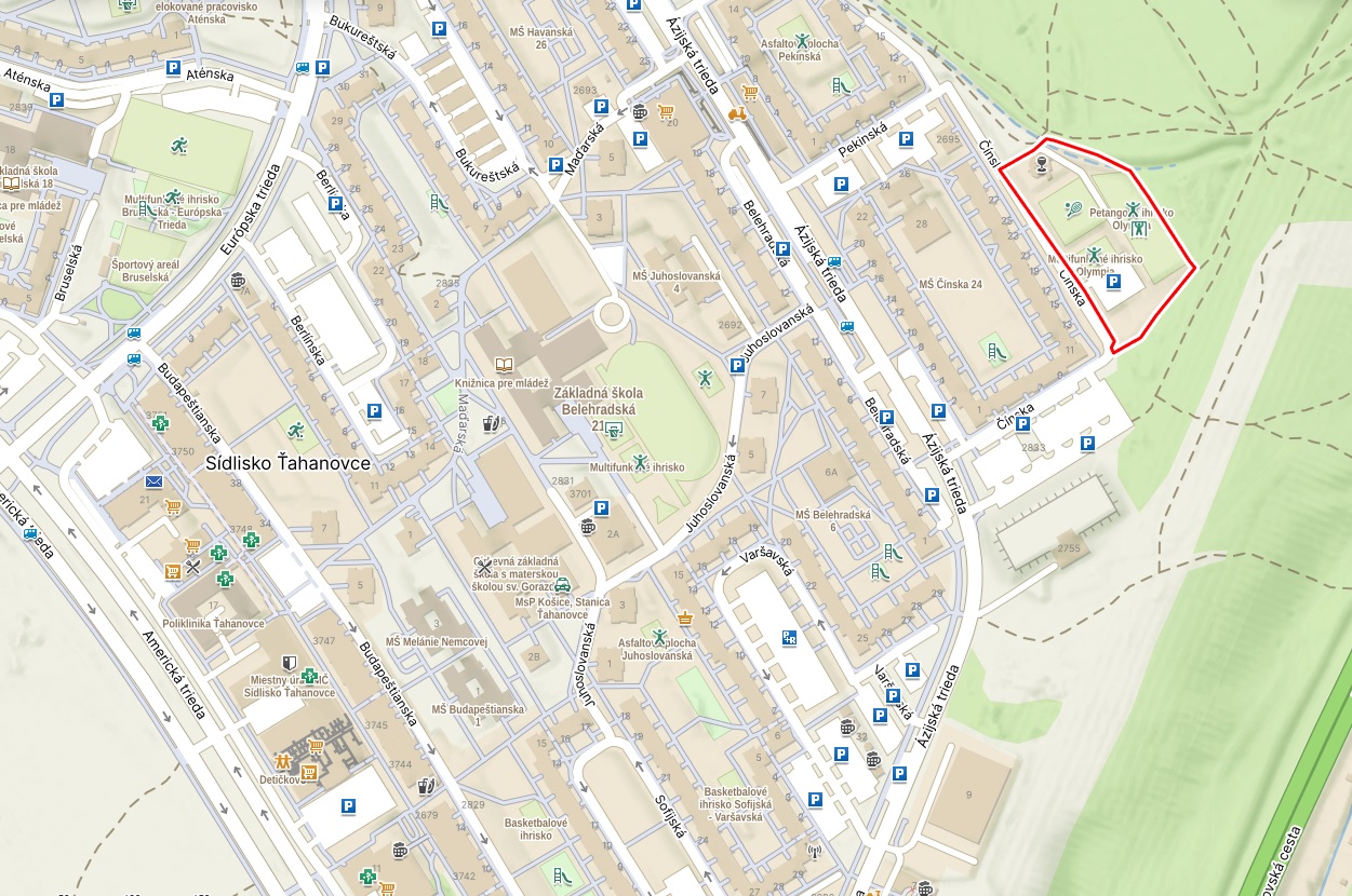 Trasa: sídlisko Ťahanovce, areál Olympia Pozri mapu– lavička Rysy – Ťahanovský les – ťažobňa Viničná – panelová cesta – starý kaštieľ Budimír – BURZA STAROŽITNOSTÍ